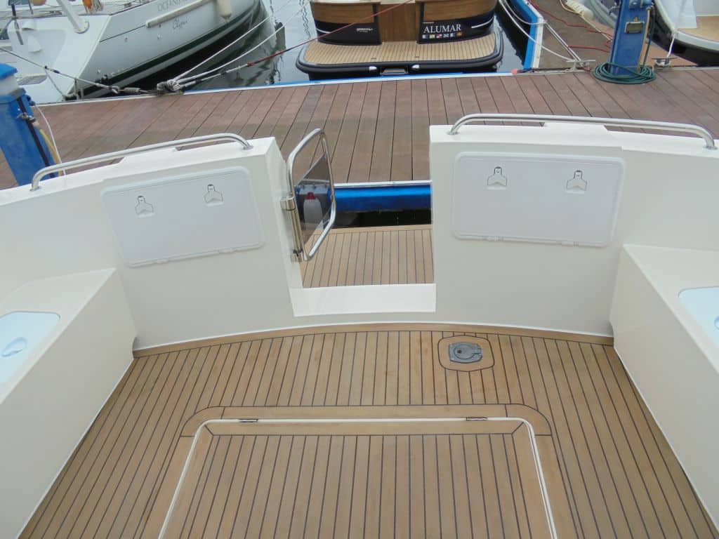 La aplicación de soluciones sintéticas con acabados que imitan la teka, como el Seadeck, disponibles en una amplia variedad de colores y diseños, consiguen acabados muy atractivos y duraderos sin los inconvenientes de mantenimiento de la madera.